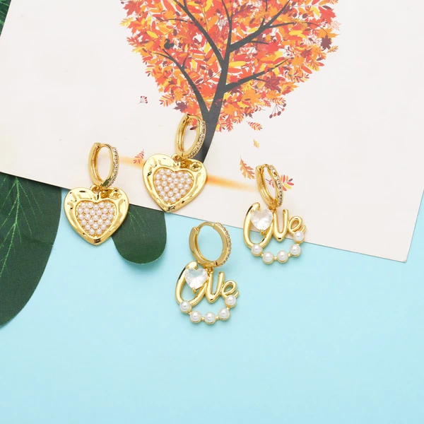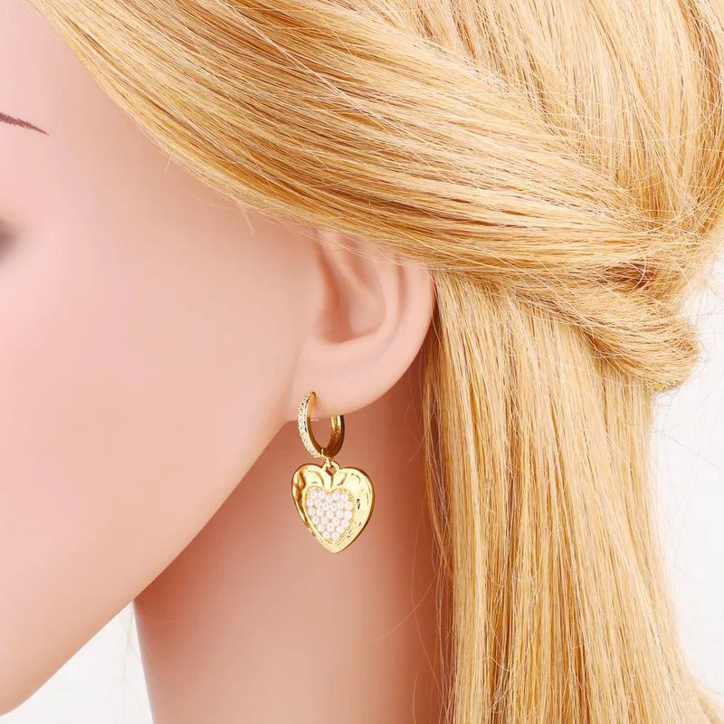 Brincos de alta qualidade para serviços pesados, totalmente incrustados, luxuosos brincos de coração em forma de C, brincos de moda europeus e americanos