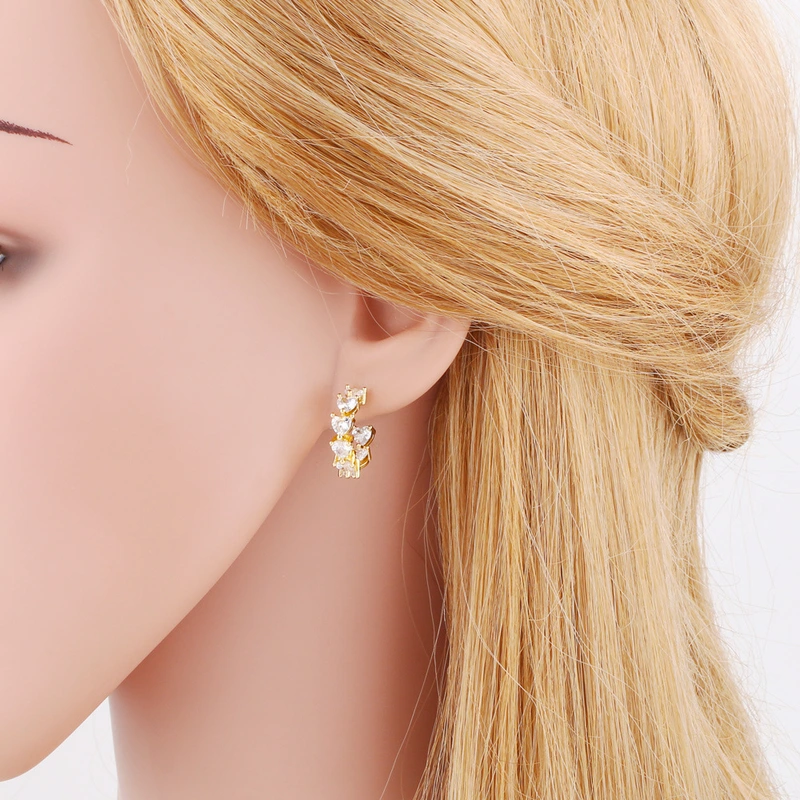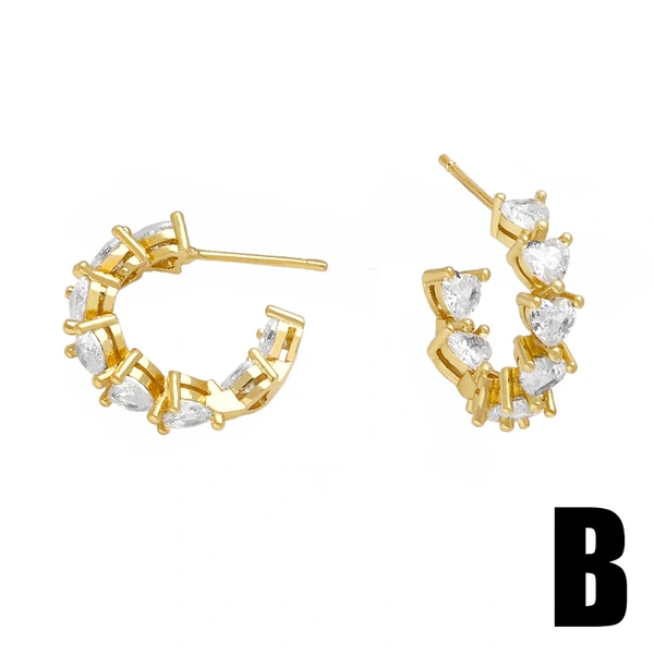 Brincos de alta qualidade para serviços pesados, totalmente incrustados, luxuosos brincos de coração em forma de C, brincos de moda europeus e americanos