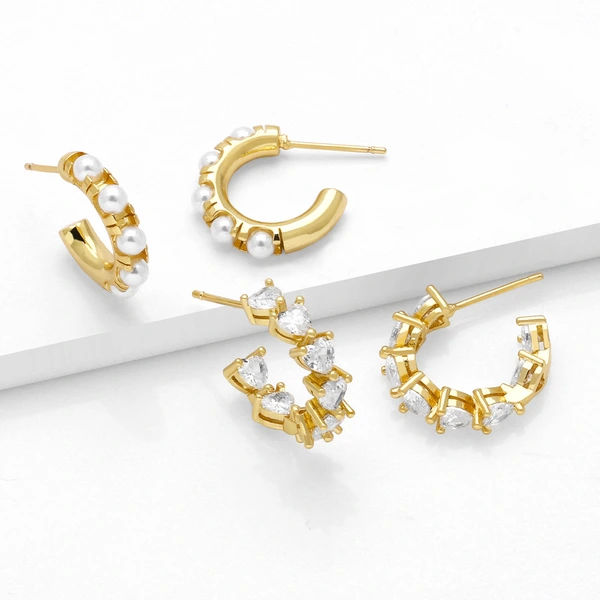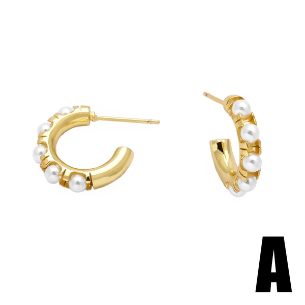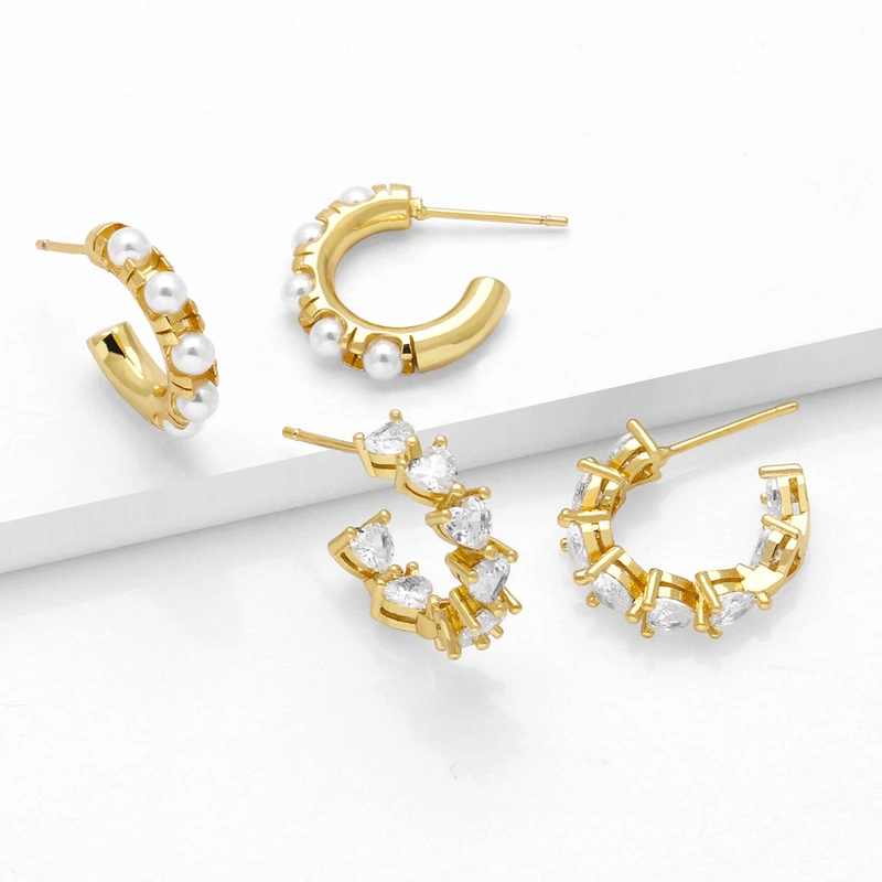 Brincos de pérolas em formato de C mais vendidos para mulheres, versáteis e sofisticados, com incrustações de zircônia, era77