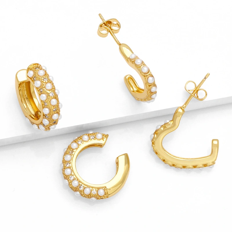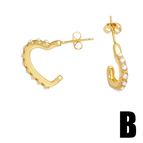 Brincos de pérolas em formato de coração, mais vendidos na Europa e nos Estados Unidos, para mulheres, versáteis e sofisticados, banhados a ouro, brincos de pressão erw02