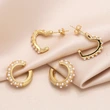 Brincos de alta qualidade para serviços pesados, totalmente incrustados, luxuosos brincos de coração em forma de C, brincos de moda europeus e americanos