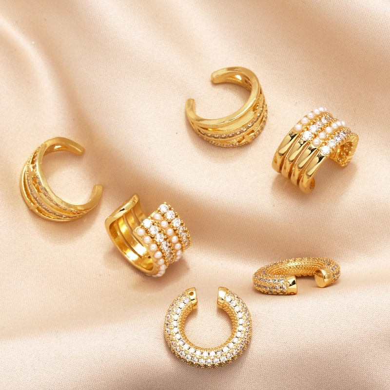 Brincos de pérolas europeus e americanos, simples, de nicho, leves, luxuosos, de alta qualidade, sem piercing na orelha, brincos de clipe de osso de orelha erz12