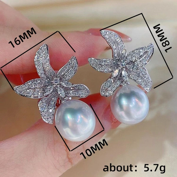 Brincos de pérolas populares europeus e americanos, pequenos brincos de estrela do mar com zircónia, brincos pequenos de temperamento de princesa feminina