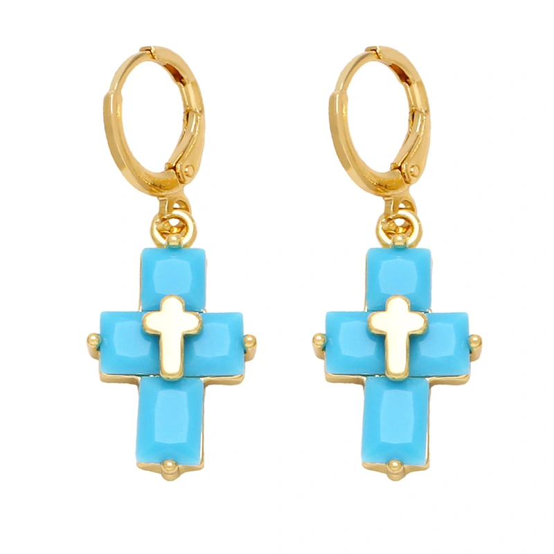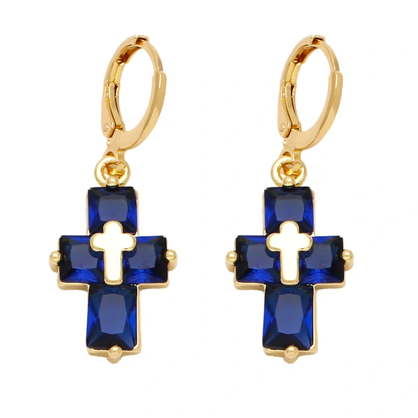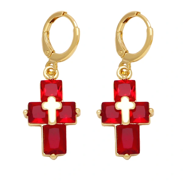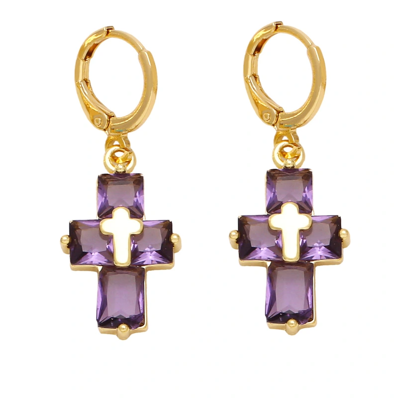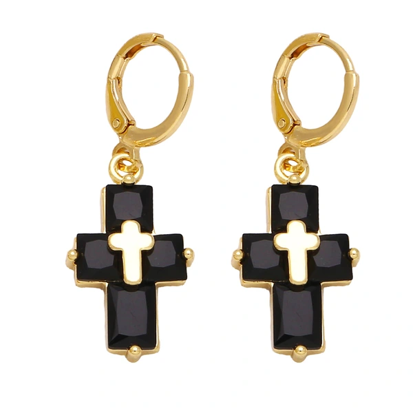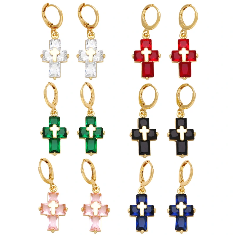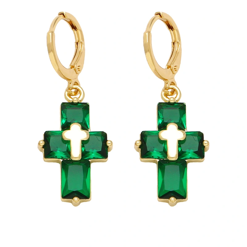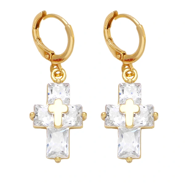 Brincos de personalidade da moda europeia e americana, brincos de cruz com temperamento simples e zircônia incrustada ert88
