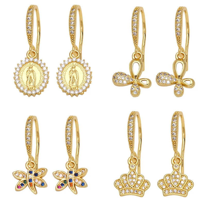 Brincos de personalidade europeia e americana com diamantes e zircônias simples, brincos de coroa de nossa senhora, design de nicho, gancho de orelha erz35
