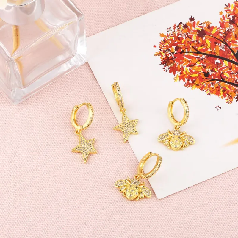 Brincos de personalidade europeus e americanos, luxuosos, com estrelas geométricas e cravejados de diamantes, clipes de orelha, joias de nicho em formato de orelha de abelha ery57