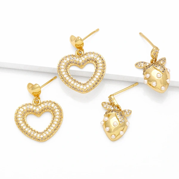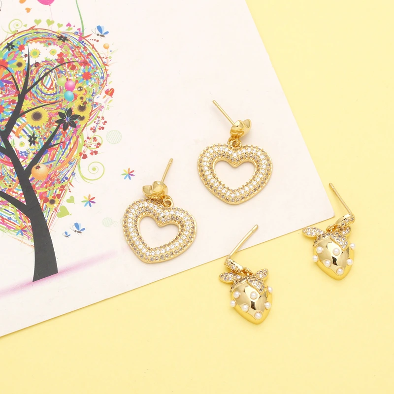 Brincos de personalidade simples europeus e americanos, brincos de amor vazados, moda feminina, brincos de morango, ert72