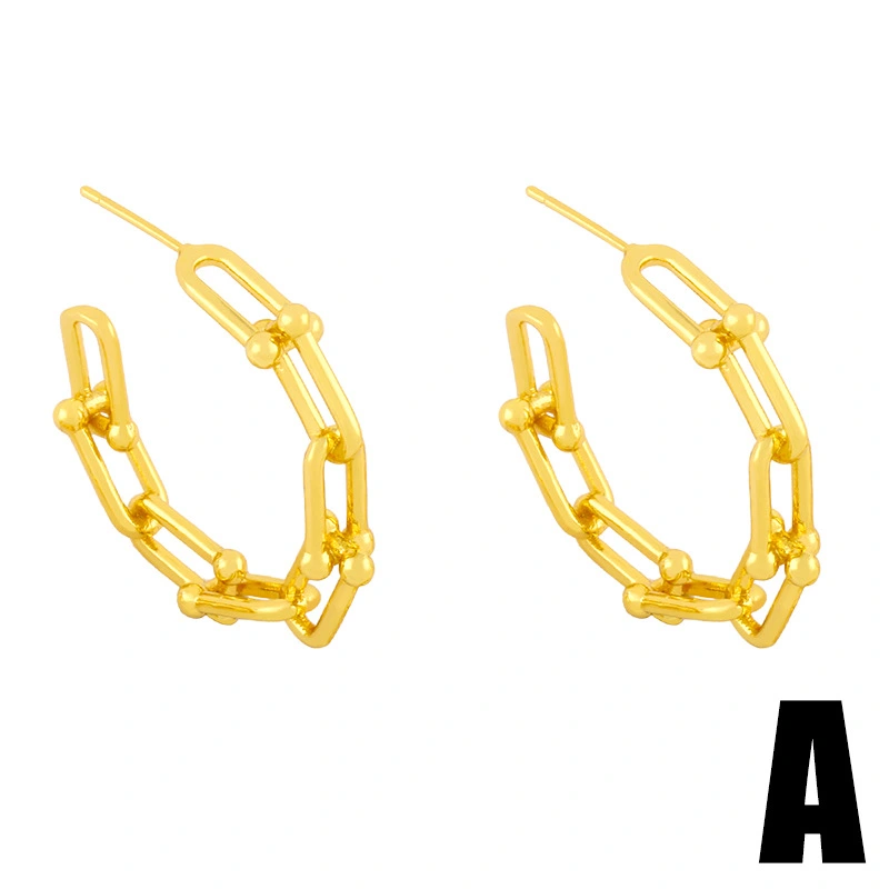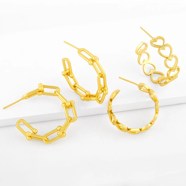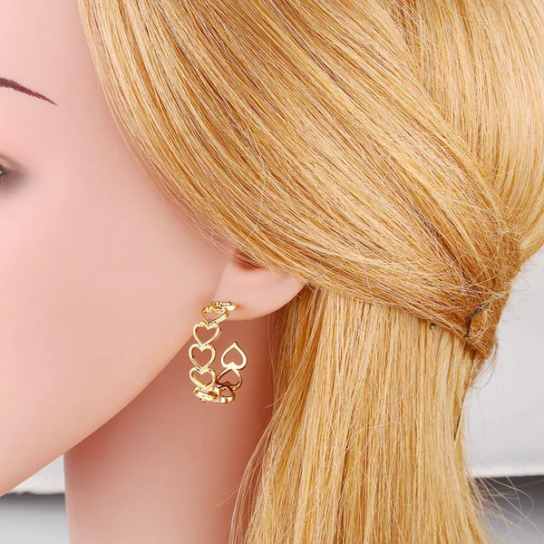 Brincos de personalidade simples europeus e americanos exagerados em formato de coração de pêssego, estilo frio, em formato de U, banhados a 18k, erw87