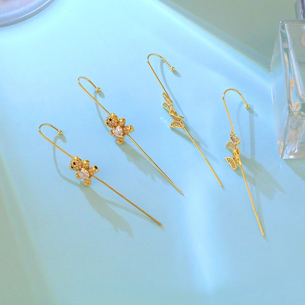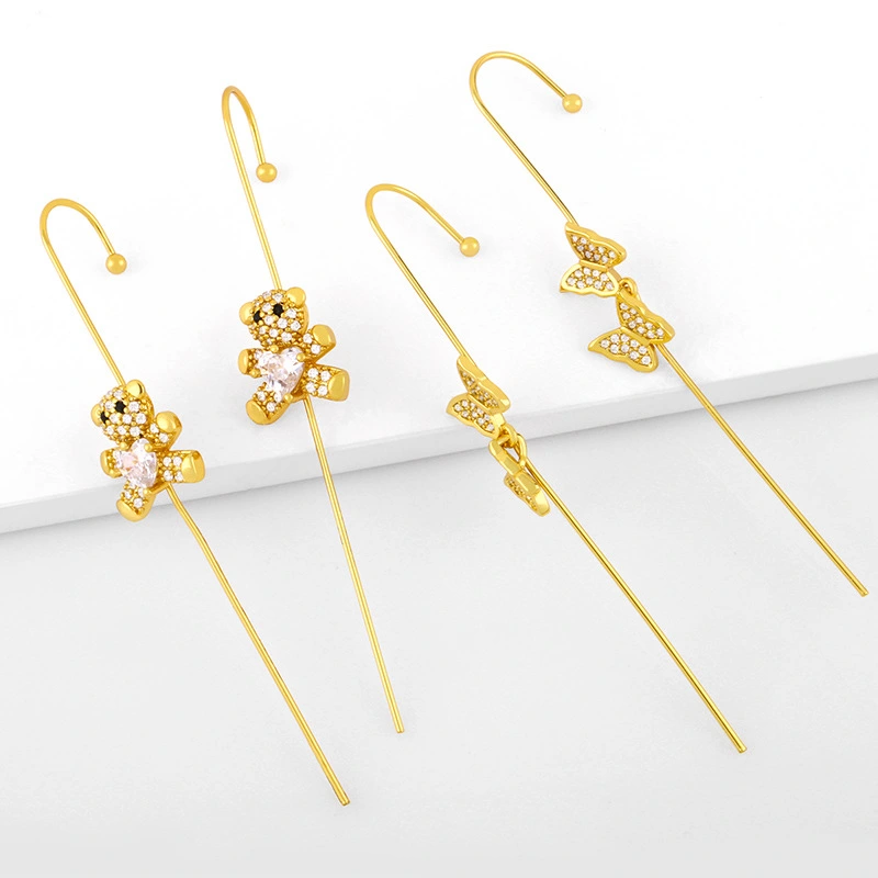 Brincos de piercing de personalidade europeus e americanos, com zircônia, gancho de orelha, borboleta, urso de amor, rede de celebridades, brincos femininos erw91