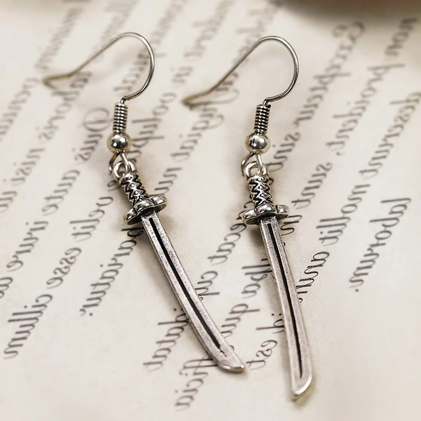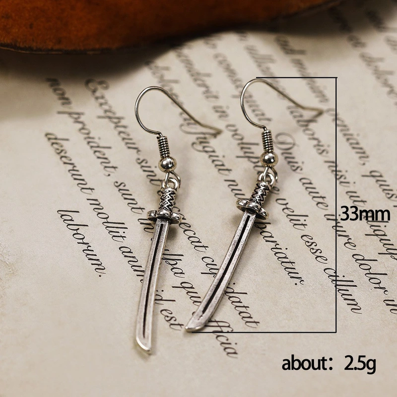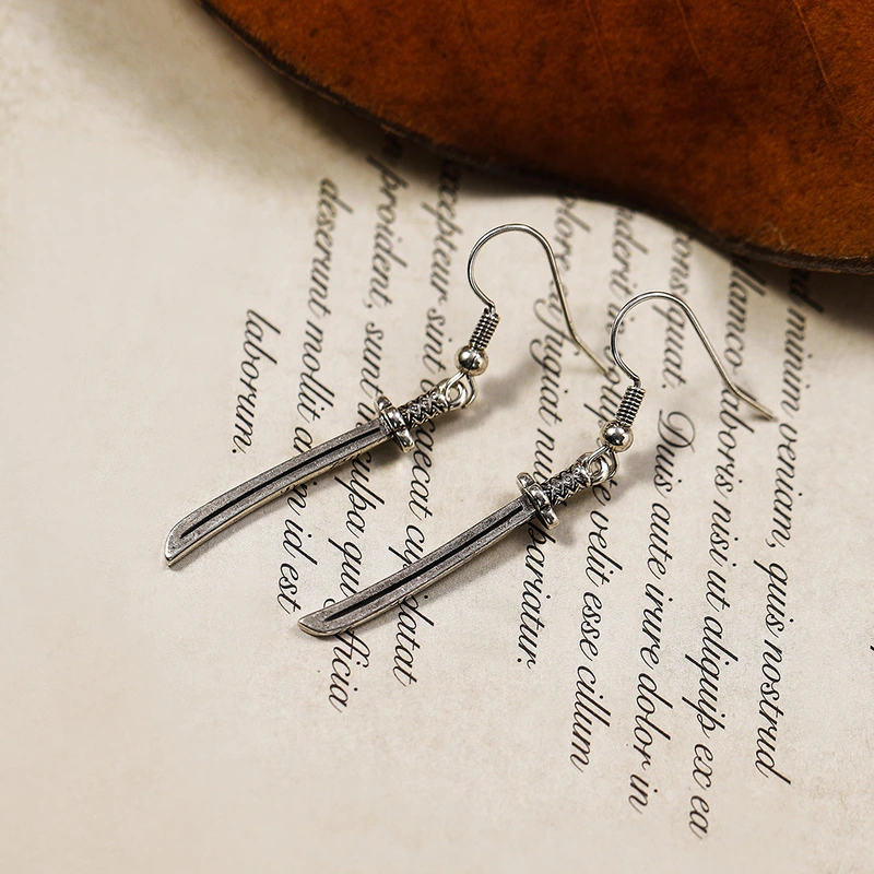 Brincos de pingente de faca longa escura harajuku retro, brincos masculinos góticos, frescos e modernos