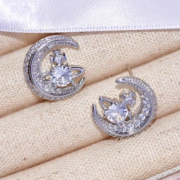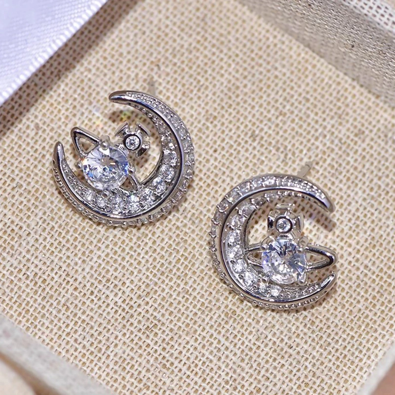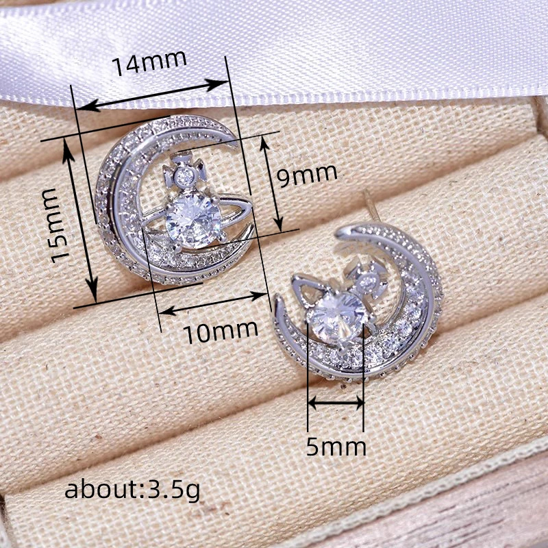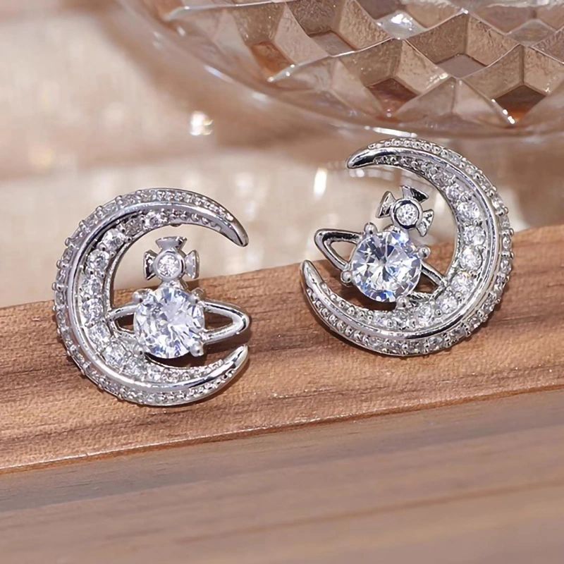Brincos de planeta e lua com design moderno para mulheres, brincos brilhantes com micro zircónias incrustadas, brincos populares
