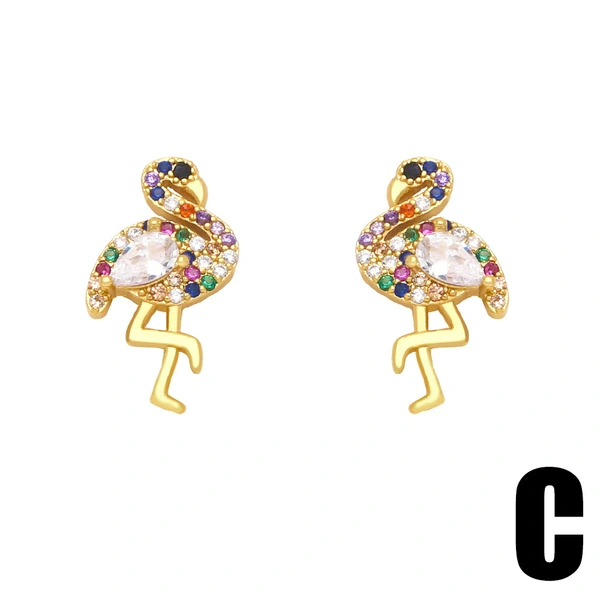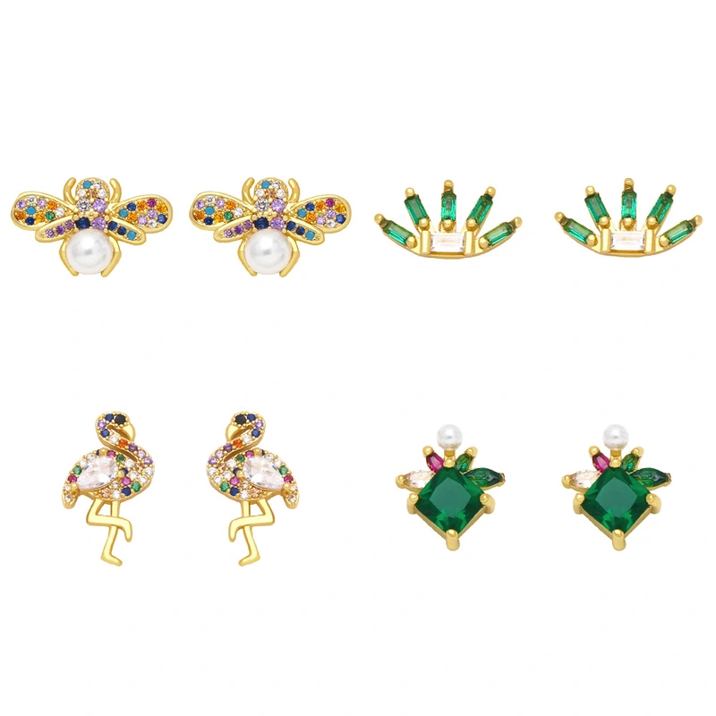 brincos de zircônia colorida europeia e americana brincos de personalidade criativa flamingo incrustados com diamantes coloridos e pérolas brincos de abelhinha era046