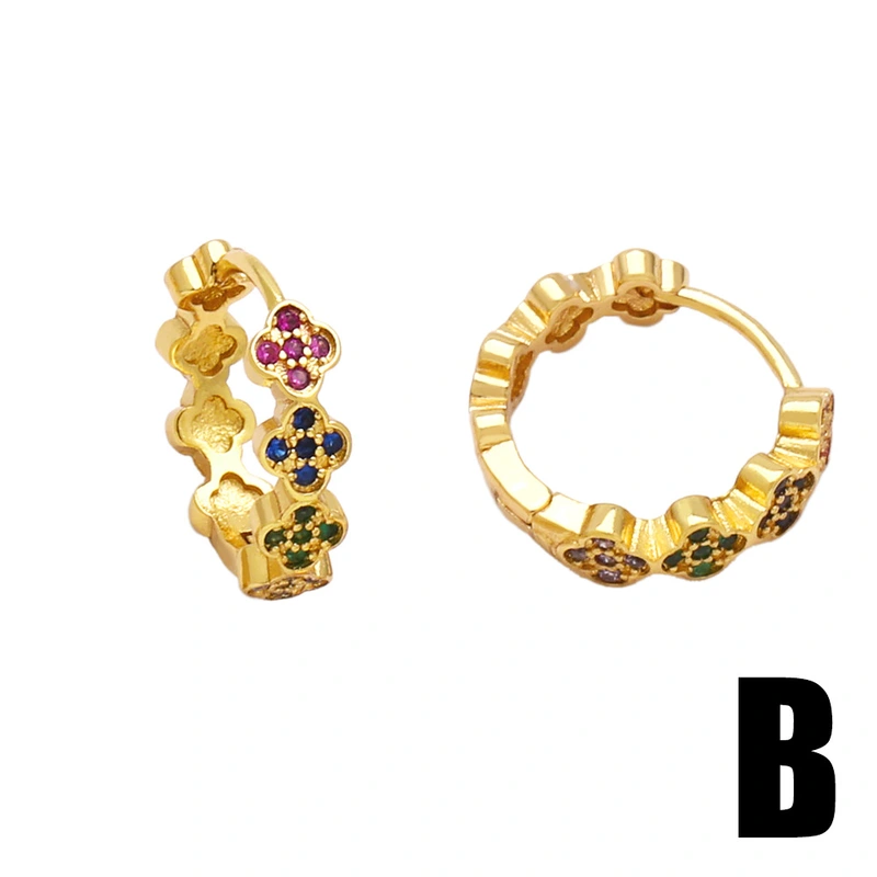 Brincos de zircônia colorida incrustada mais vendidos para mulheres, brincos de flores banhados a ouro com design de nicho erq22