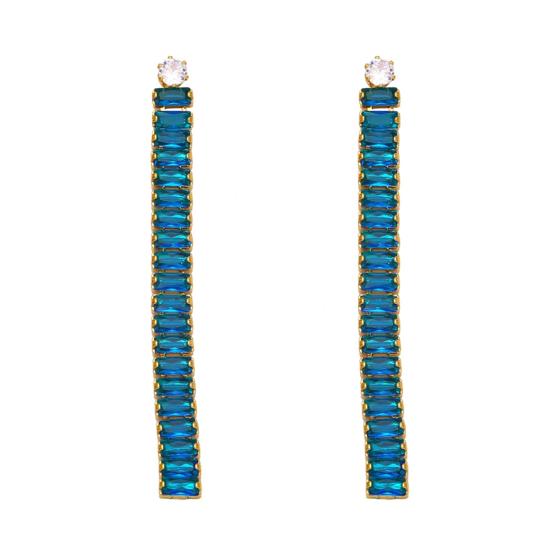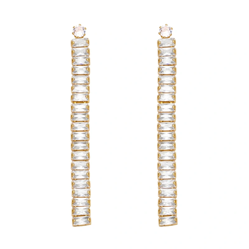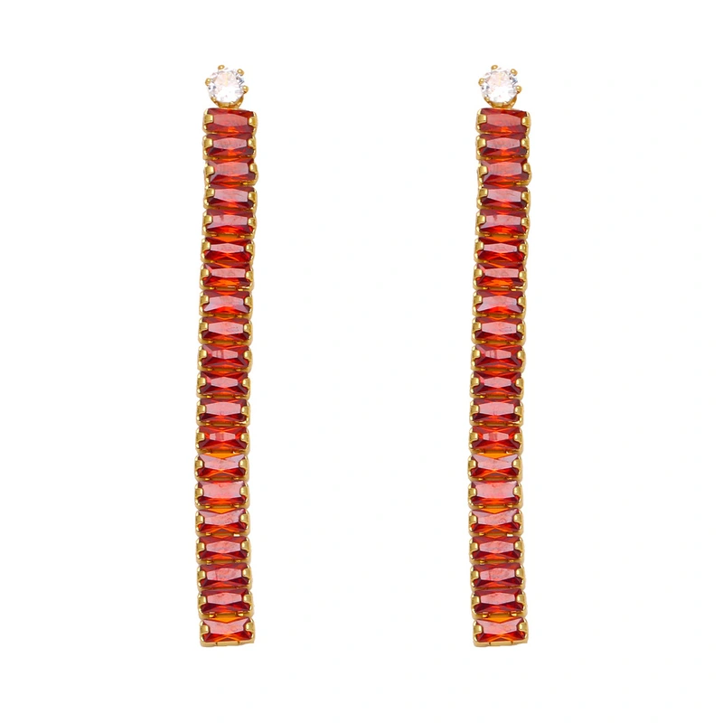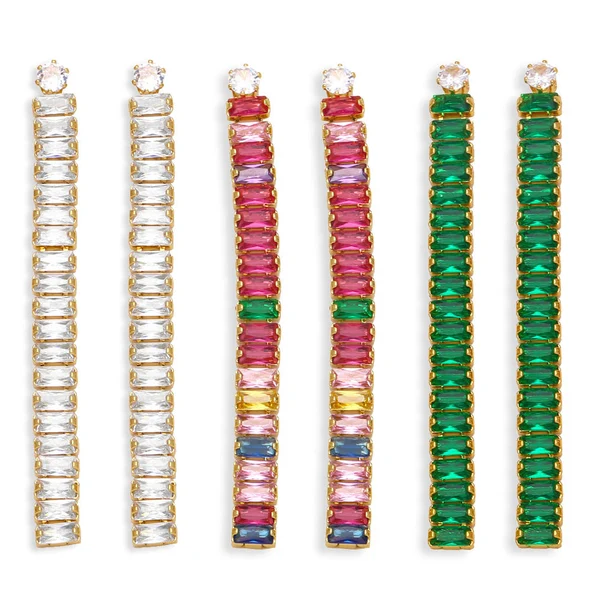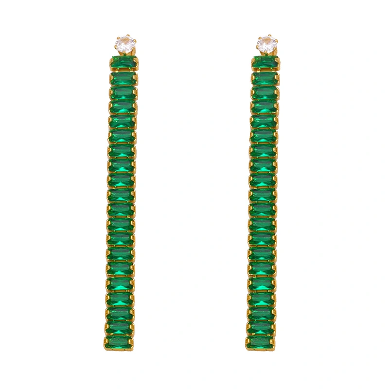 Brincos de zircônia colorida personalizados em liquidação, brincos de borla longa de alta qualidade para mulheres, brincos europeus e americanos erz52