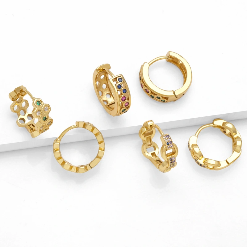 Brincos coreanos elegantes de temperamento antigo, misture e combine brincos ovais com microincrustações de zircónias brilhantes, vendas diretas da fábrica