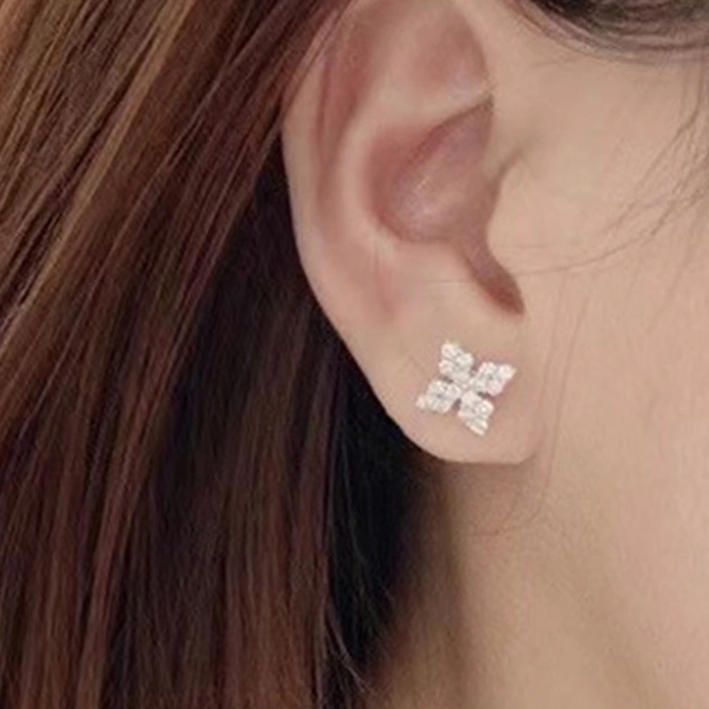 Brincos de zircónia com flores de quatro folhas, simples e de moda, mais vendidos, temperamento, elegante, brincos de flores para mulheres