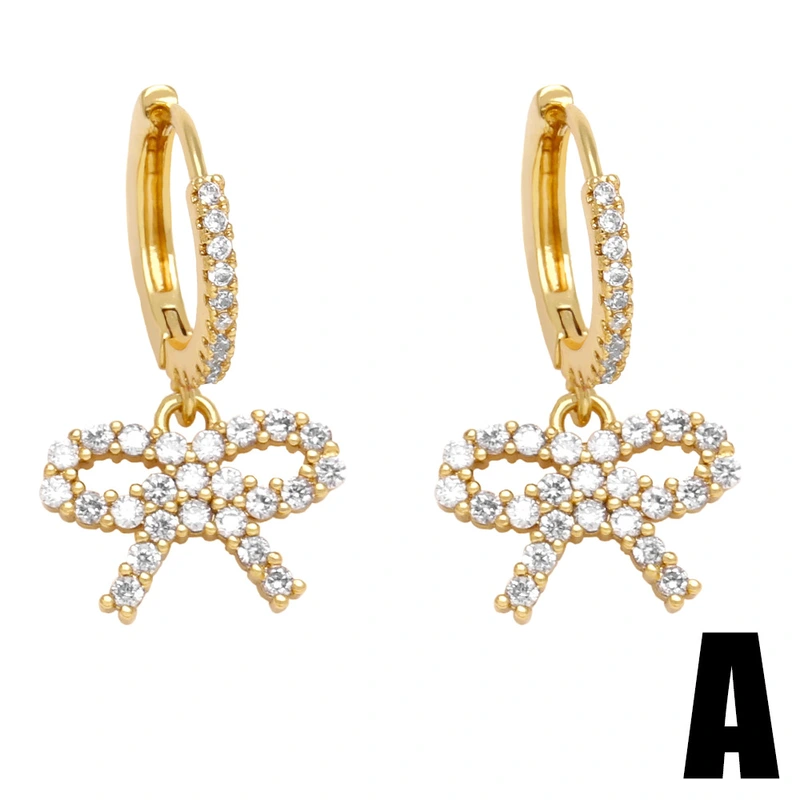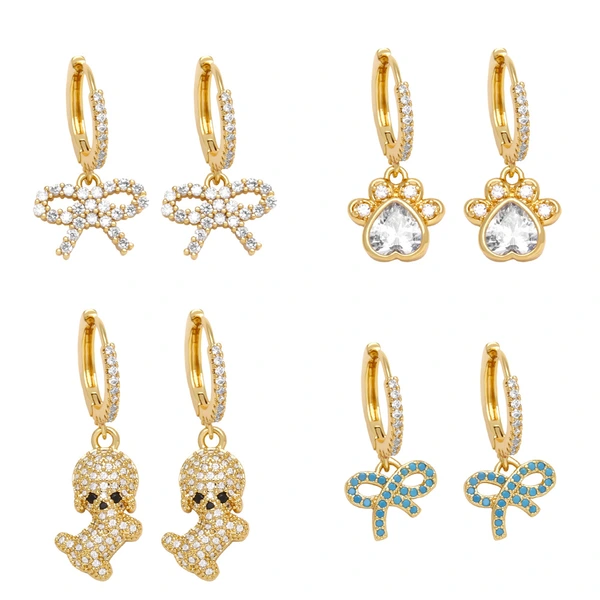 Brincos de zircônia com laço requintado europeu e americano, personalidade feminina, temperamento, brincos fofos de garra de cachorrinho erq45