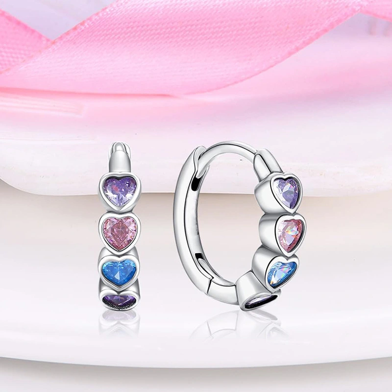 Brincos de zircónia requintados e fofos para mulheres, joias coloridas em forma de coração, joias doces e frescas