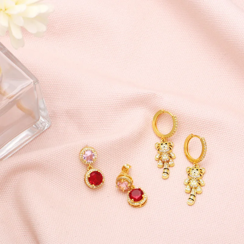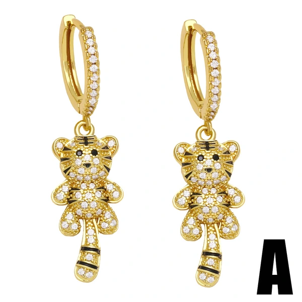Brincos do zodíaco do ano do tigre, brincos de personalidade em forma de tigre, brincos femininos de temperamento leve e luxuosos de alta qualidade erz46