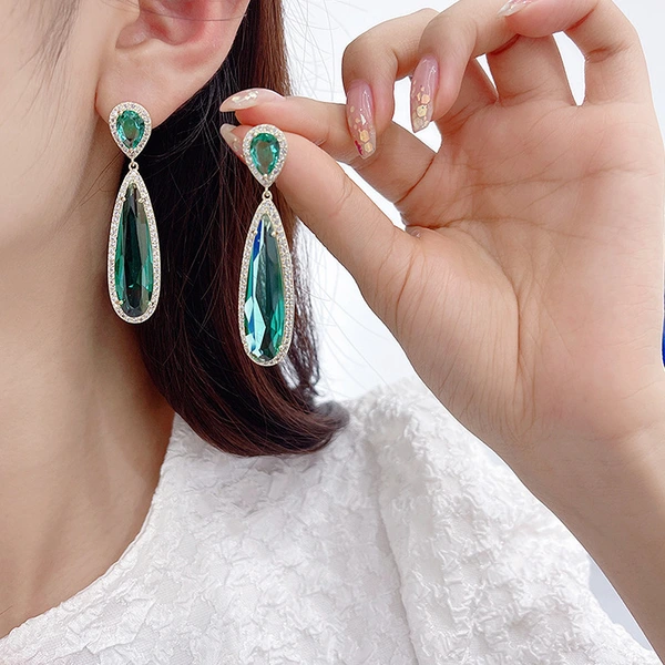 Brincos estilo frio europeu e americano, brincos longos retrô de noite, simples, gota d'água, zircônia, novo, comércio eletrônico