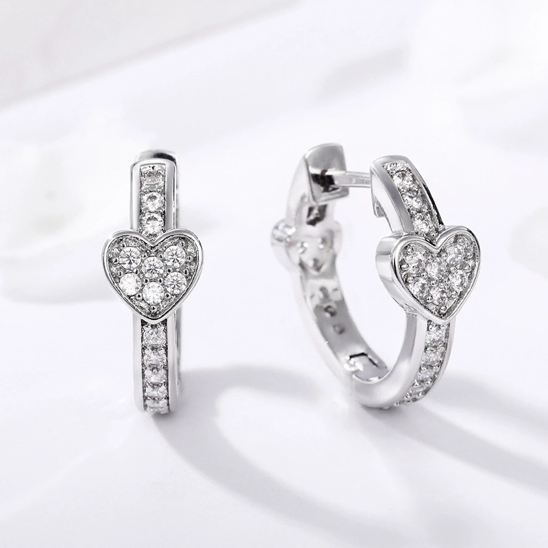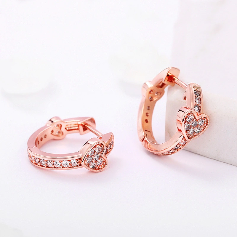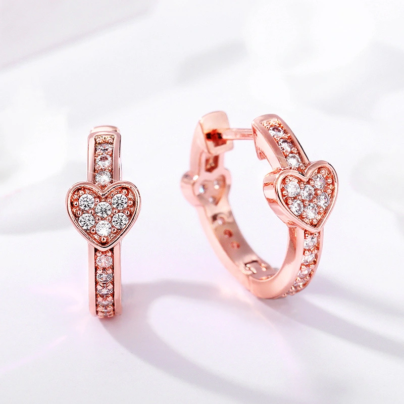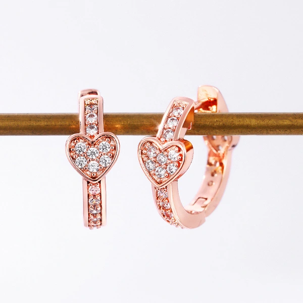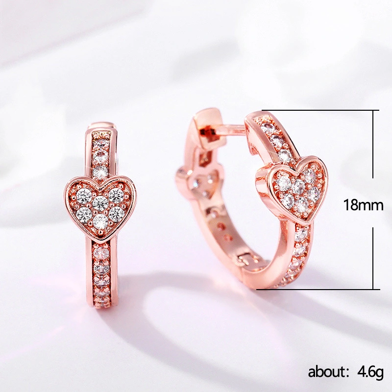 Brincos europeus e americanos de novo estilo para mulheres, estilo doce e descolado, em forma de coração, brincos de zircónia incrustada, brincos elegantes e populares por grosso