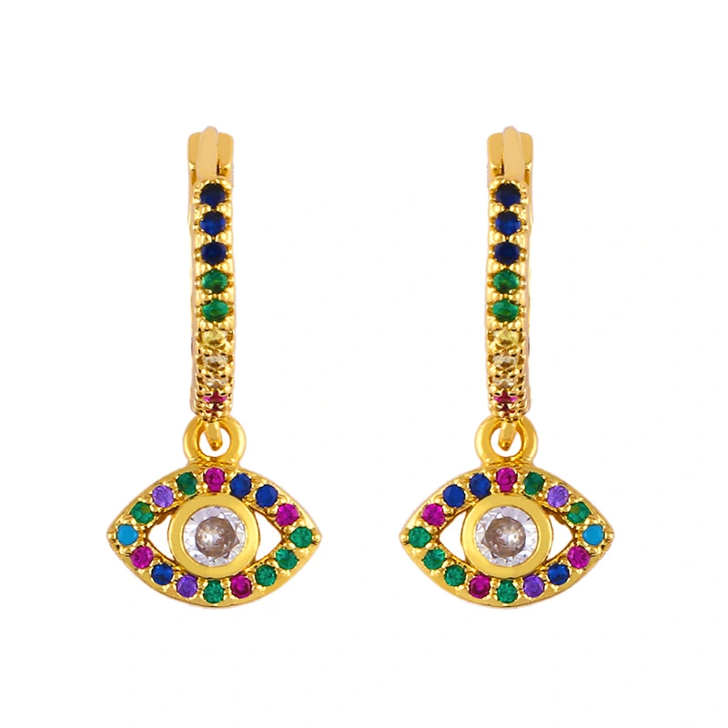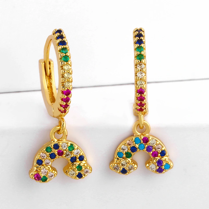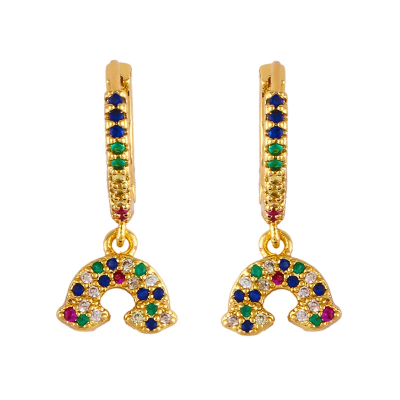 Brincos europeus e americanos em liquidação, brincos de arco-íris com microzircônias incrustadas para mulheres, brincos pequenos da moda, atacado err83