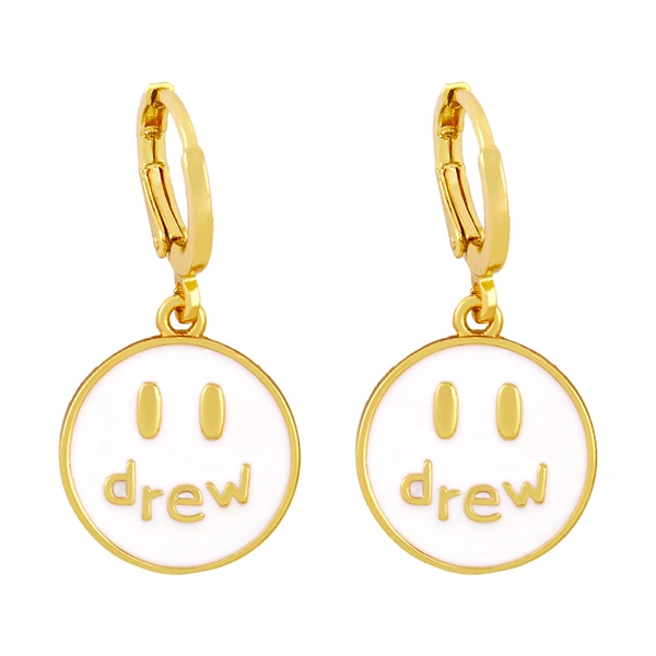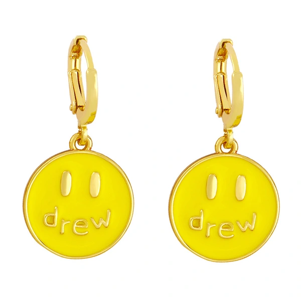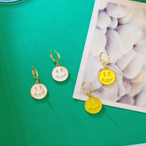 Brincos europeus e americanos fofos com sorriso, brincos redondos com gotas de óleo e cor doce erx28