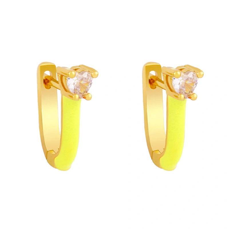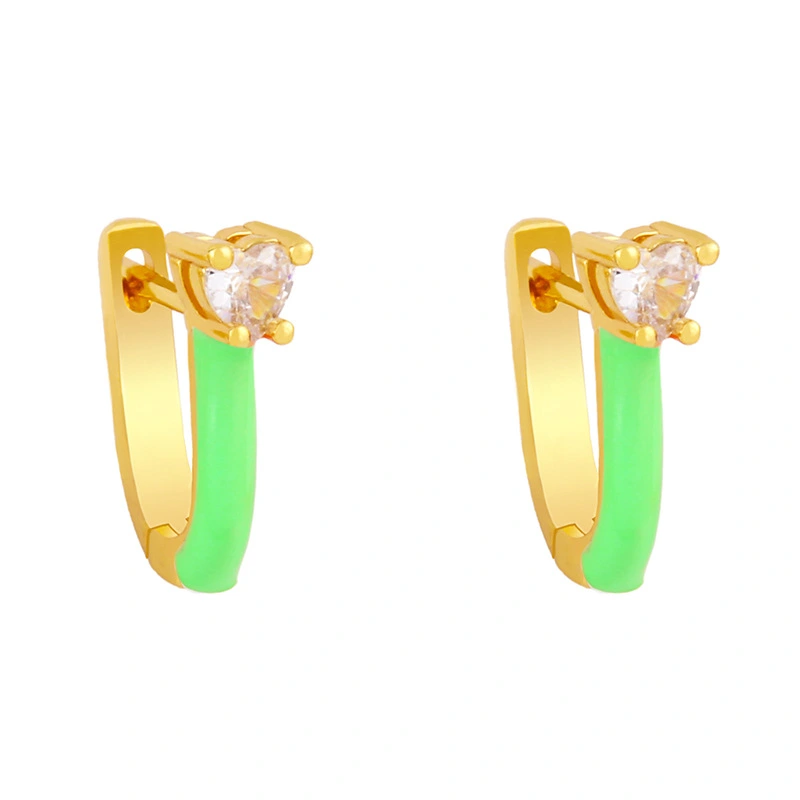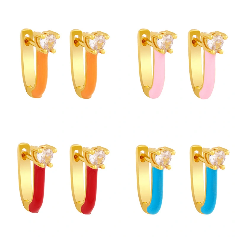 Brincos europeus e americanos populares em formato de gota de óleo, brincos em formato de U, brincos de zircônia, cores doces, femininos, erx96