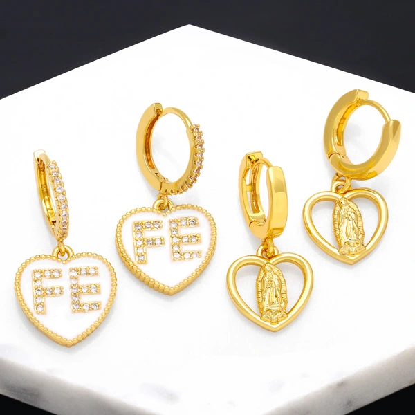 Brincos europeus e americanos vazados em formato de coração da virgem maria com letra de amor brincos fe fivela de orelha feminino era275