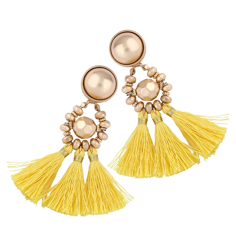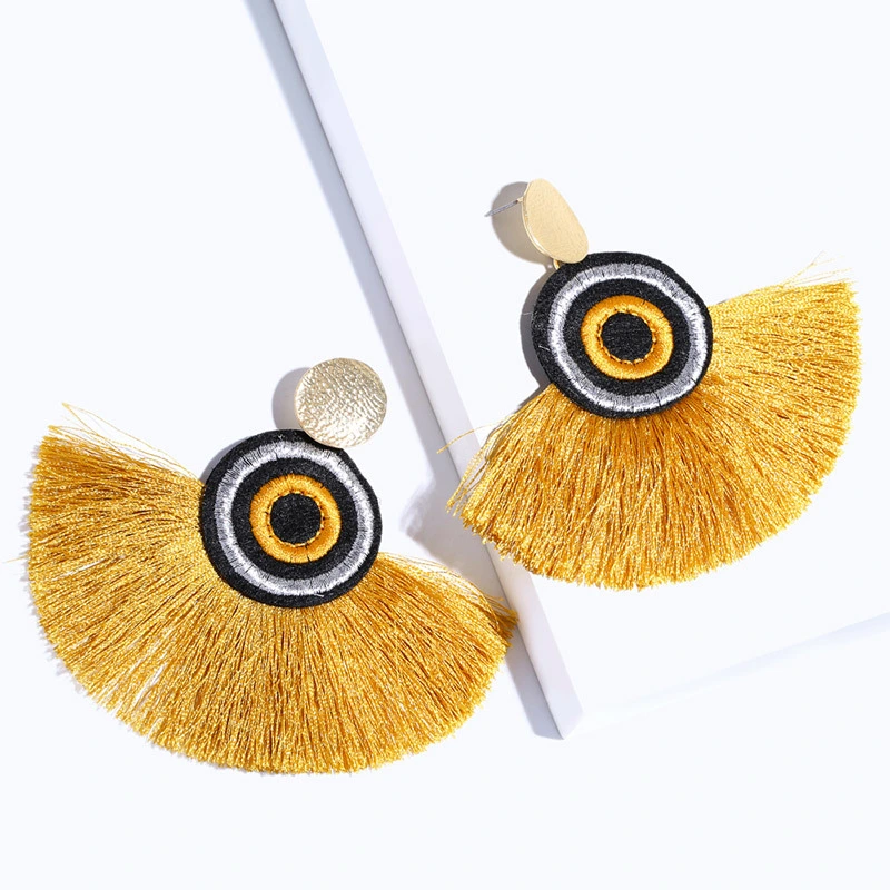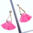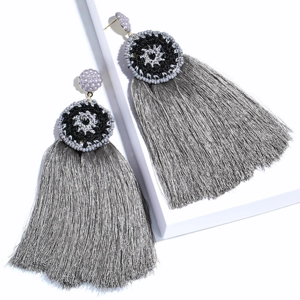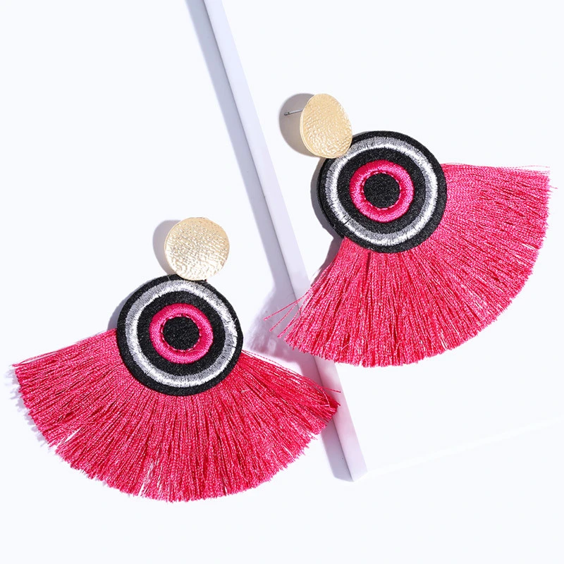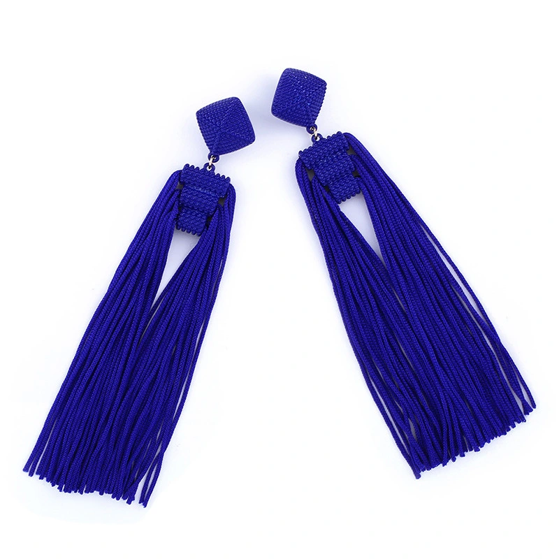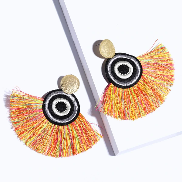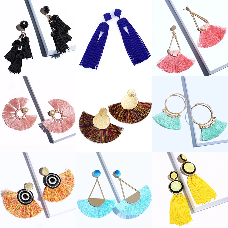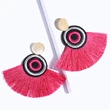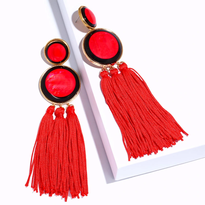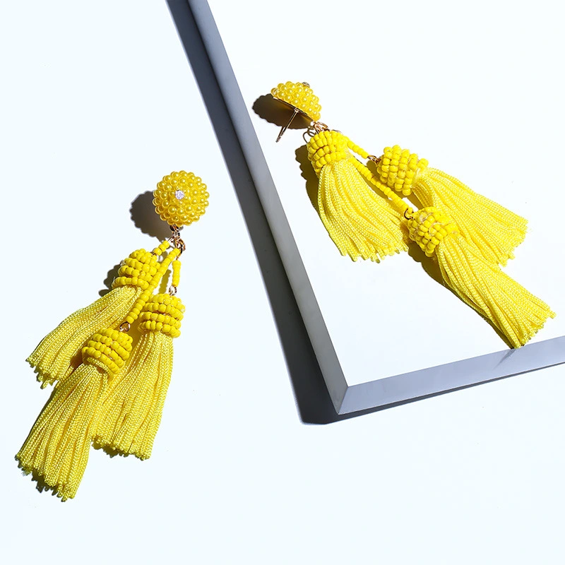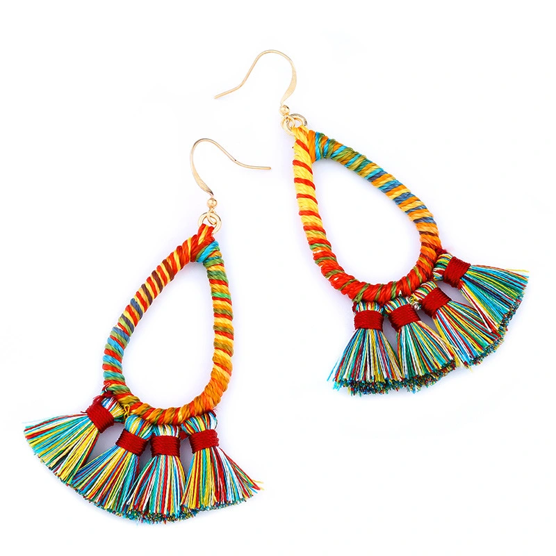 Brincos exagerados estilo étnico retrô de joias europeias e americanas, brincos longos com borlas multicoloridas tecidos à mão erk82