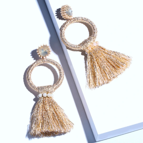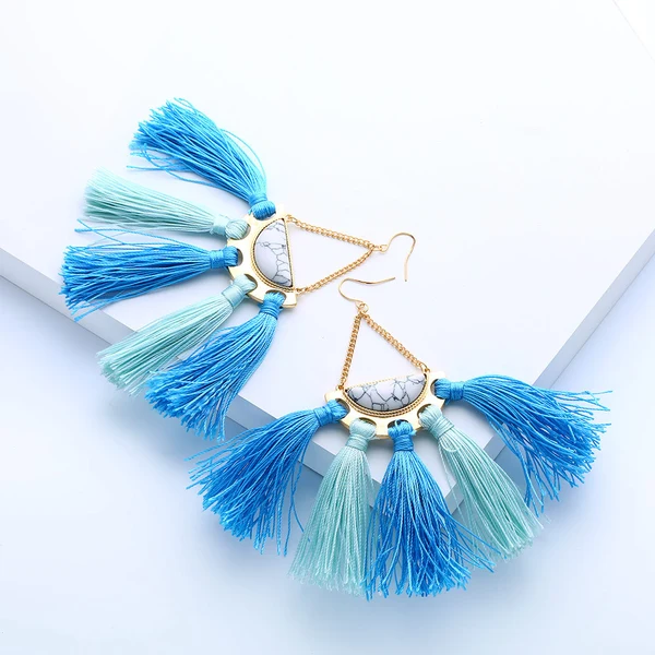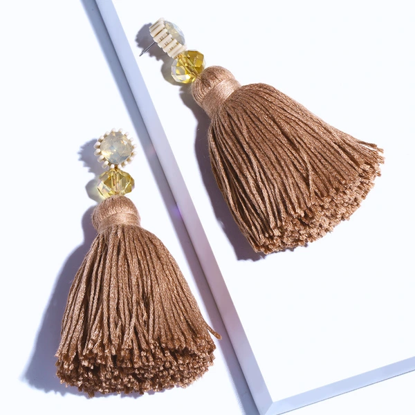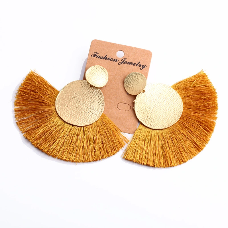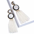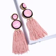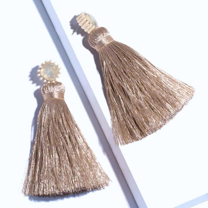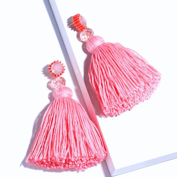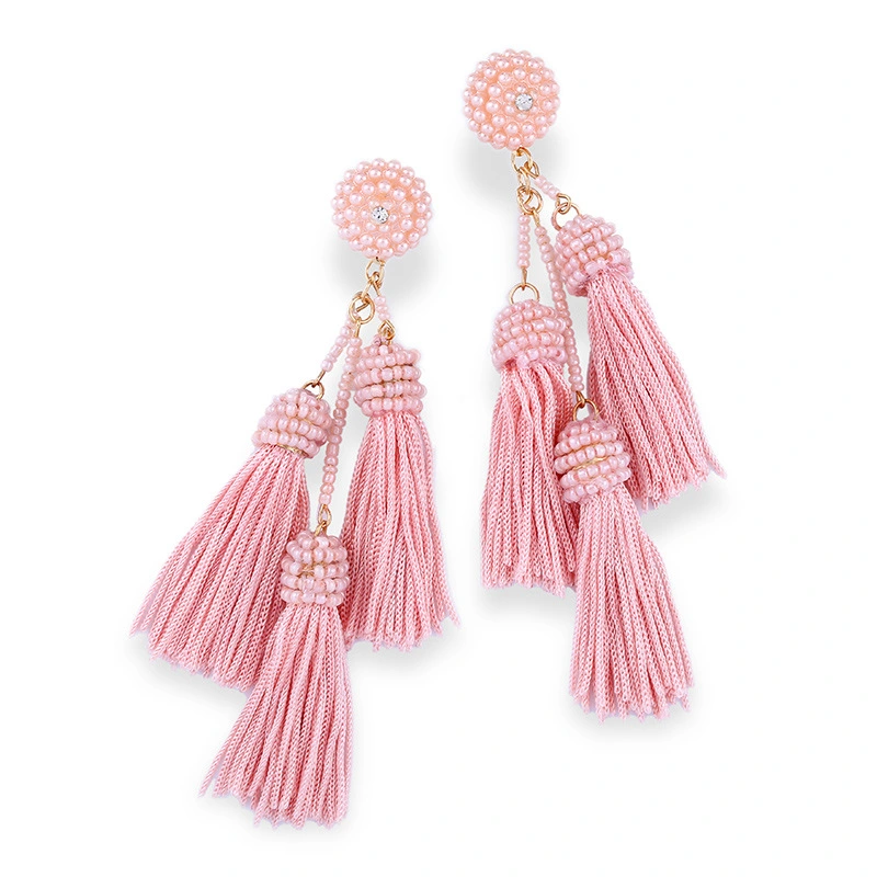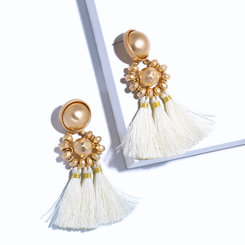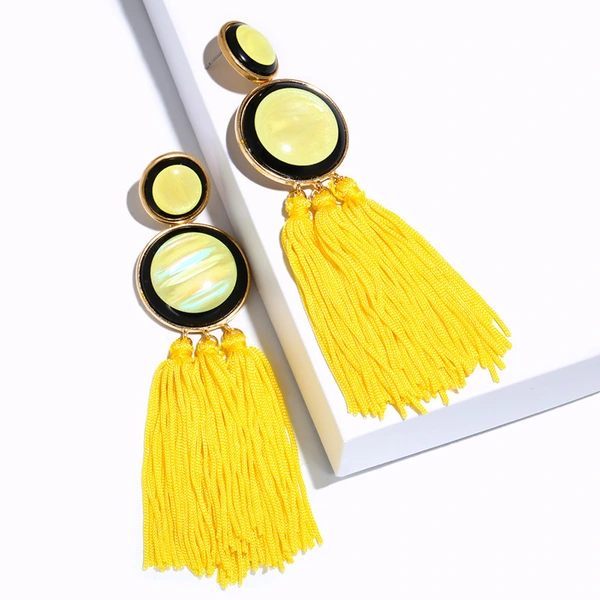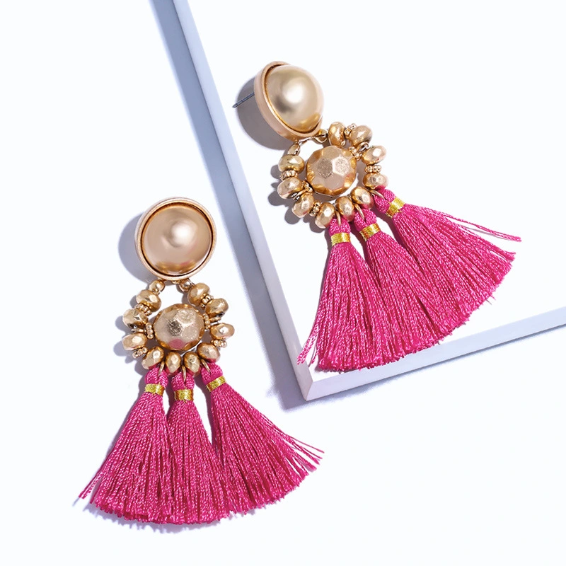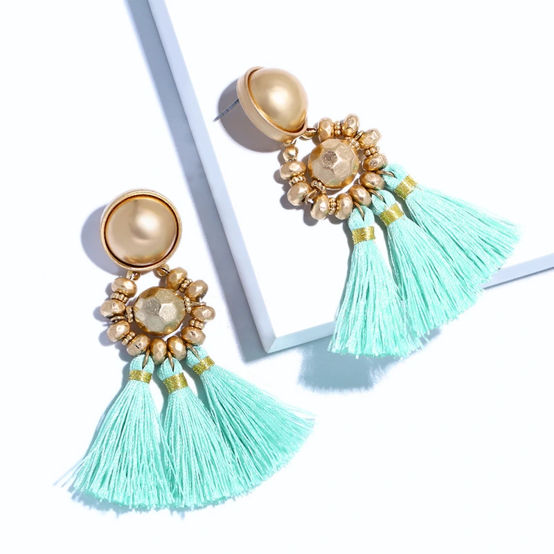Brincos exagerados estilo étnico retrô de joias europeias e americanas, brincos longos com borlas multicoloridas tecidos à mão erk82