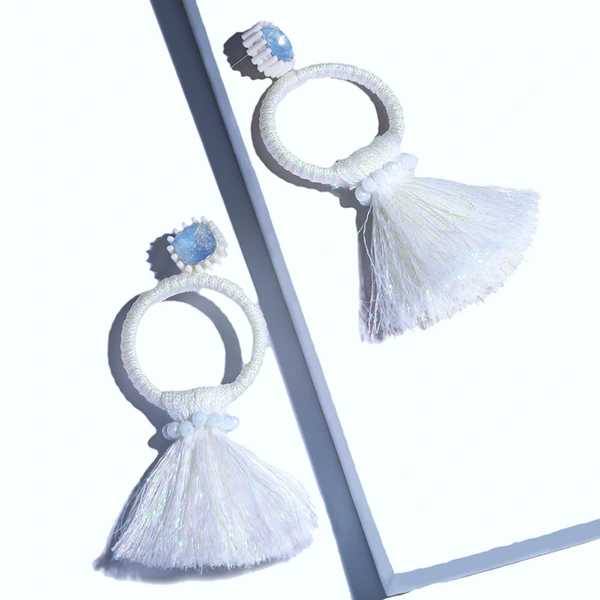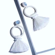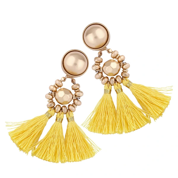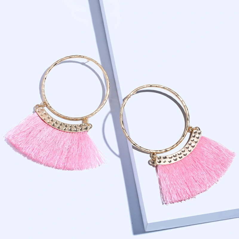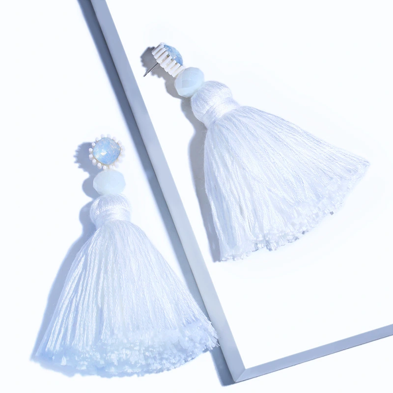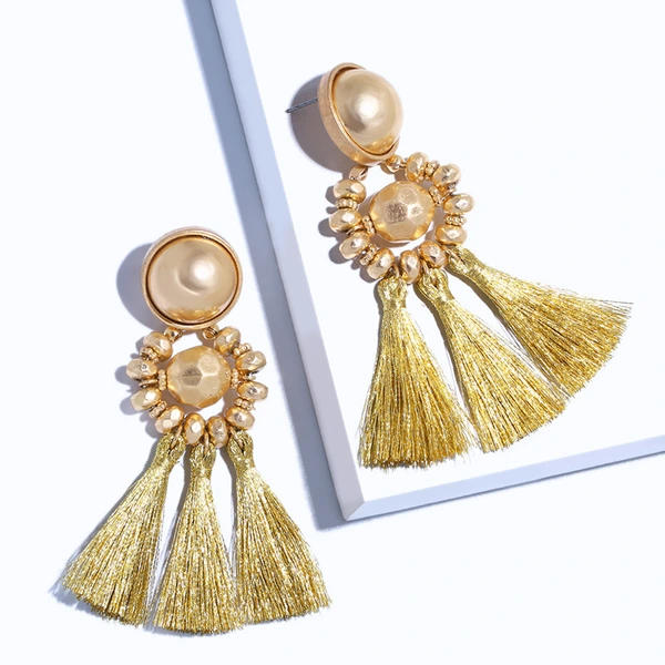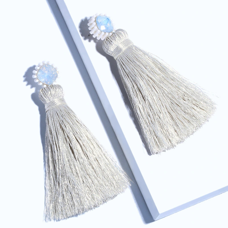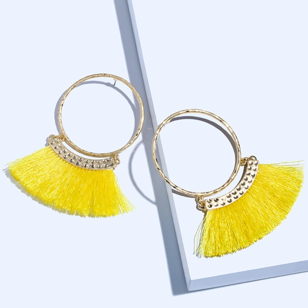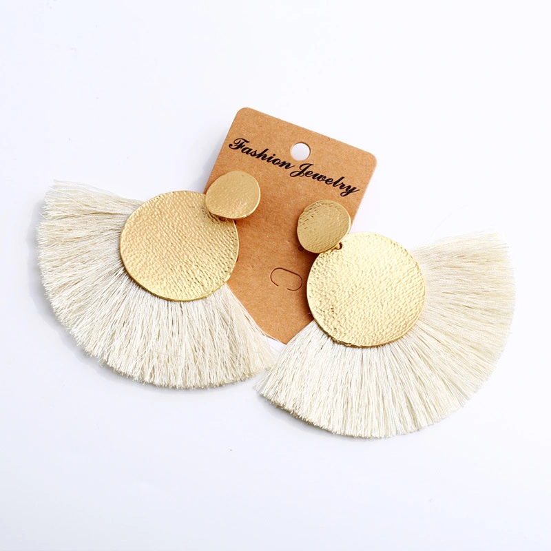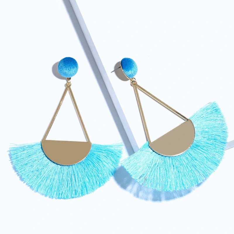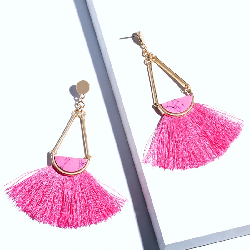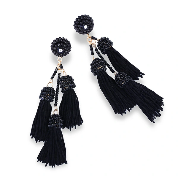 Brincos exagerados estilo étnico retrô de joias europeias e americanas, brincos longos com borlas multicoloridas tecidos à mão erk82