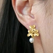 brincos de pérolas de imitação simples, brincos de flores, moda francesa, retro, leves, luxuosos, brincos elegantes e temperamentais
