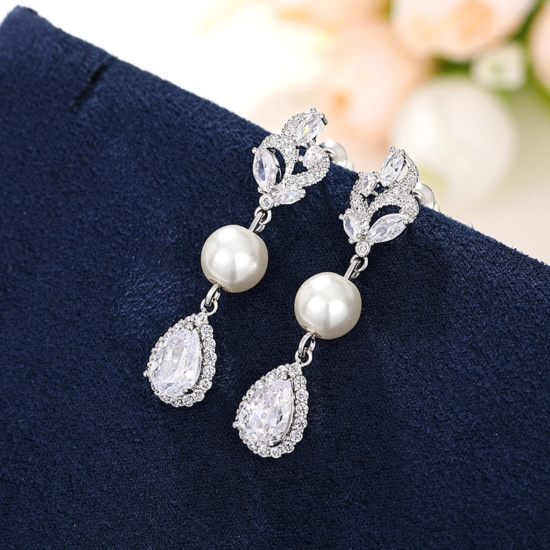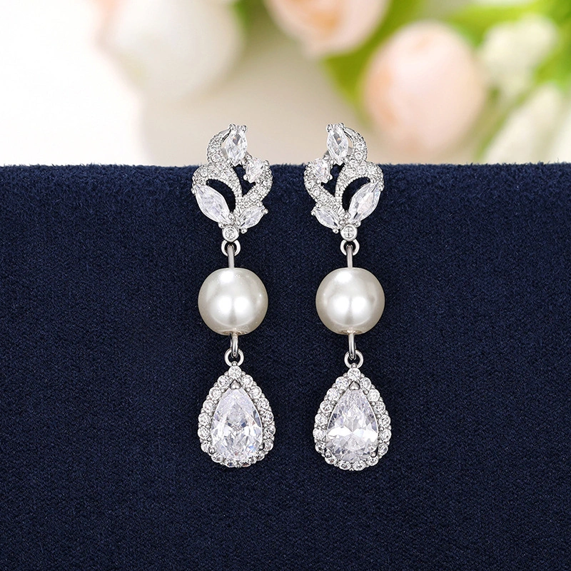 brincos florais retro europeus e americanos, brincos de pérolas artificiais de estilo francês, brincos longos femininos em forma de lágrima