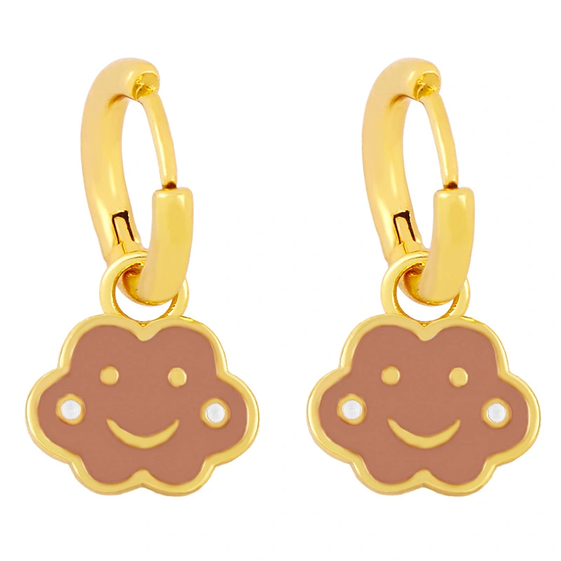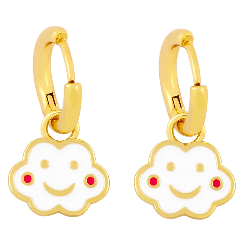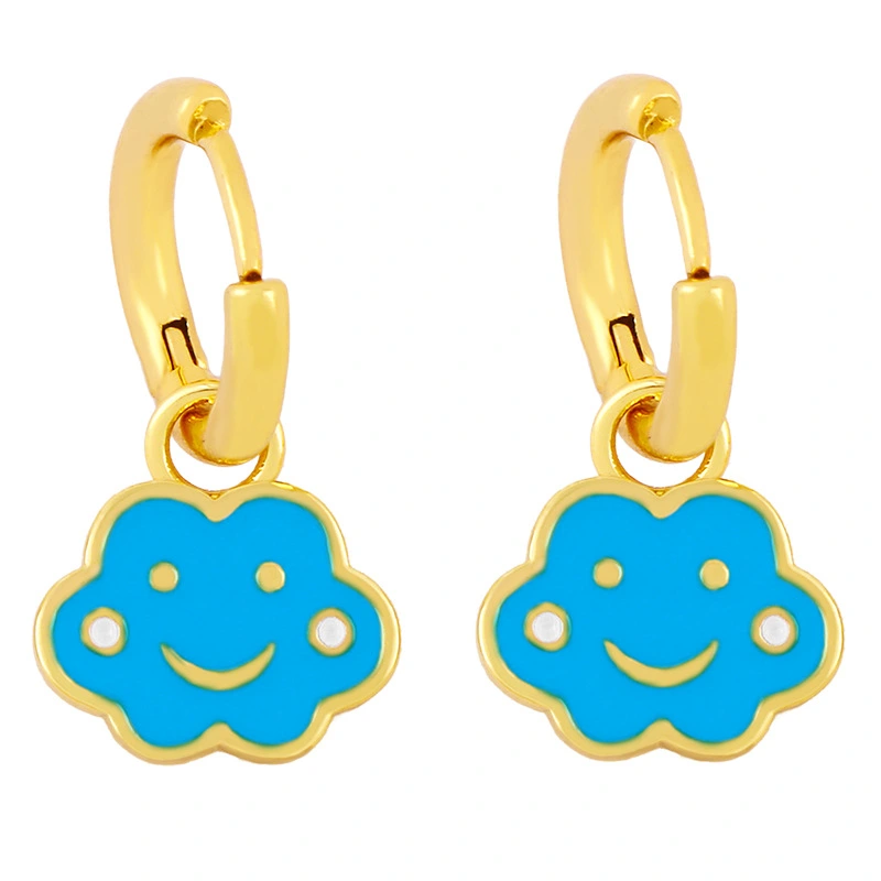 Brincos fofos com sorriso de nuvem femininos europeus e americanos, brincos de gota de óleo roxo doce, brincos erx54