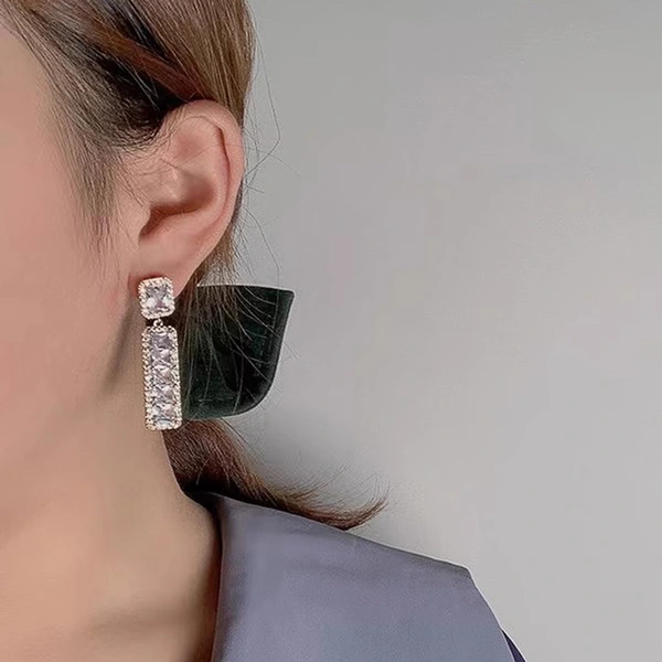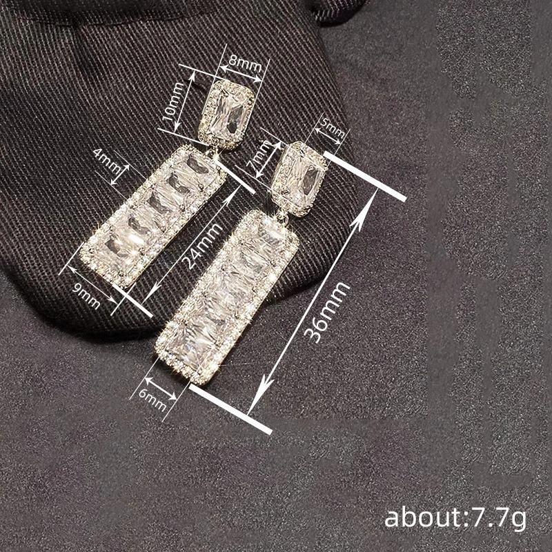 Brincos geométricos brilhantes de celebridades de alta qualidade para mulheres, brincos longos e quadrados de zircónia brilhante, roupas leves e luxuosas a condizer