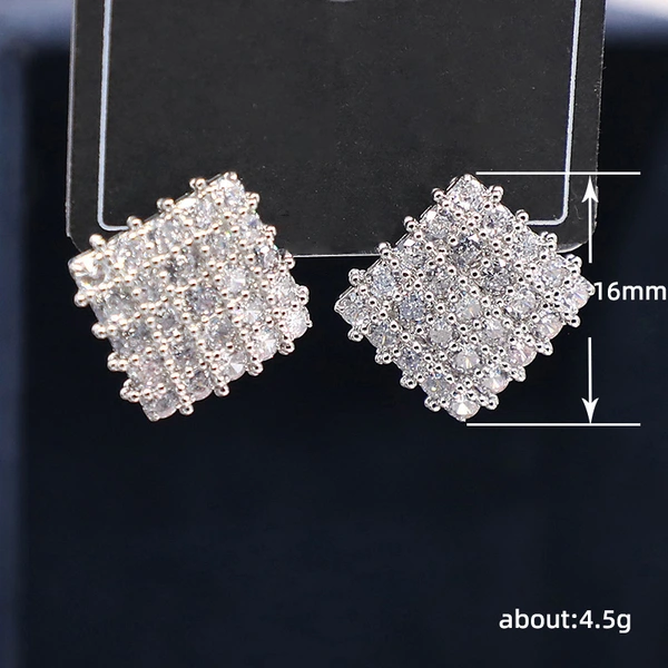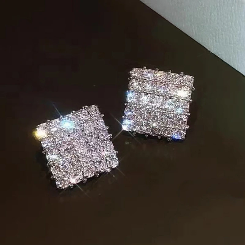 Brincos geométricos de alta qualidade em formato de diamante, novos brincos cheios de zircônio, estilo retrô de Hong Kong, brincos japoneses e coreanos de diamantes da moda