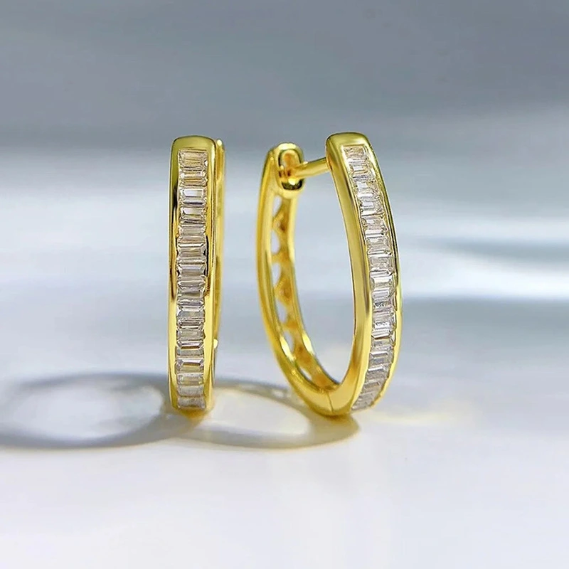 Brincos geométricos de personalidade da moda europeia e americana, brincos de zircónia incrustados de estilo quente para mulheres, brincos de argola populares