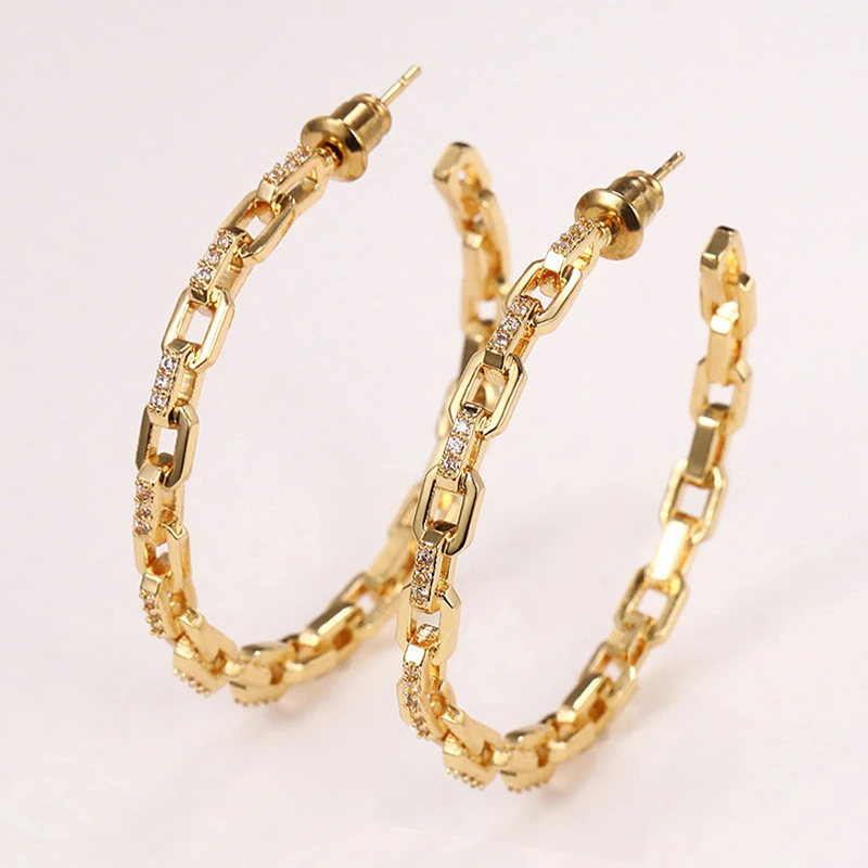 Brincos geométricos de temperamento empresarial, joias europeias e americanas, brincos simples de corrente oca em forma de C