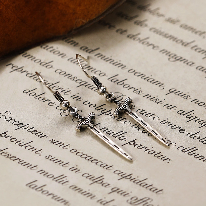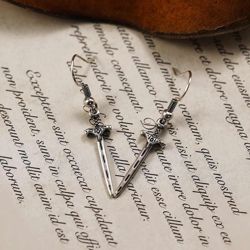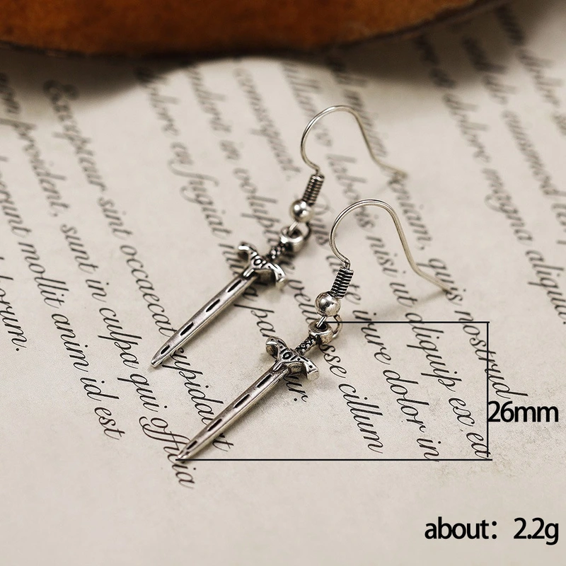 Brincos góticos de espada e adaga, brincos punk escuros de espada longa, joias retro femininas europeias e americanas, venda por grosso