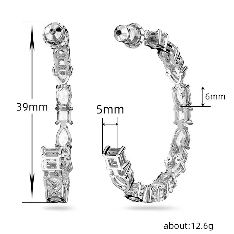 Brincos de alta qualidade para serviços pesados, totalmente incrustados, luxuosos brincos de coração em forma de C, brincos de moda europeus e americanos