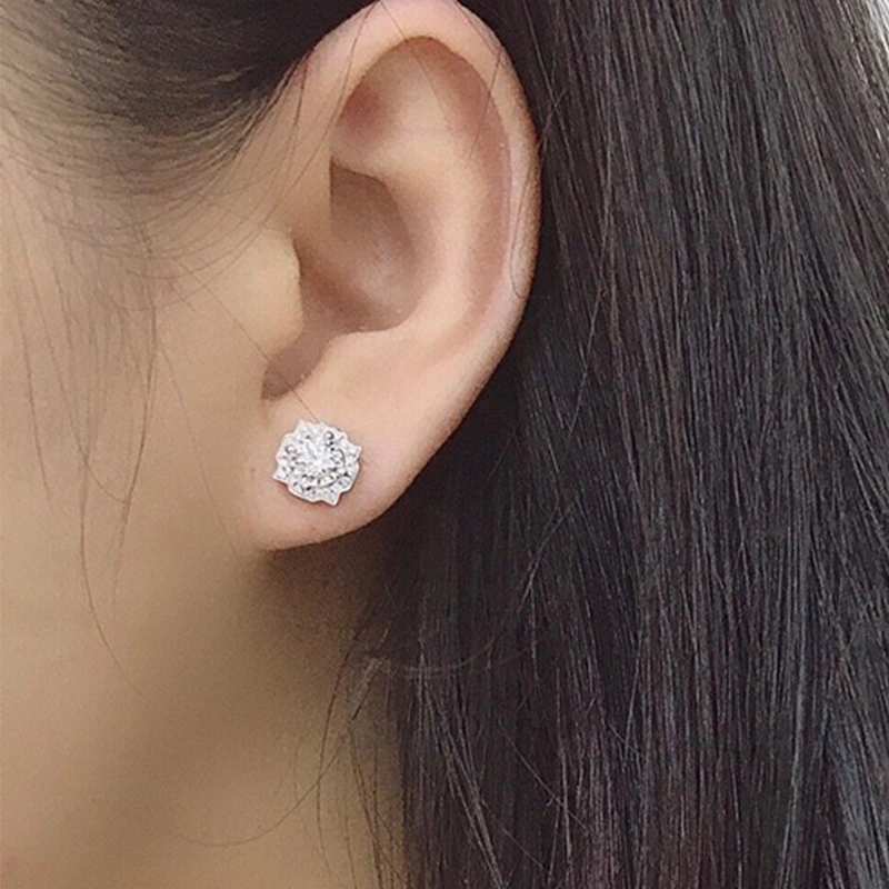 Brincos japoneses e coreanos combinados, brincos de cristal de flores elegantes e sofisticados, brincos de zircónia simples, elegantes e requintados