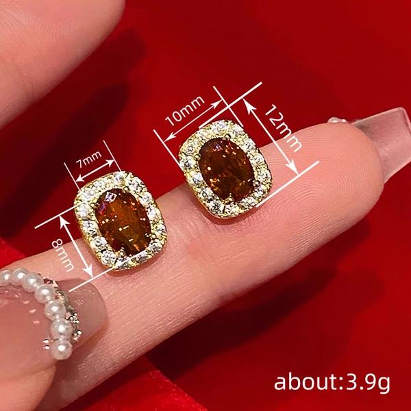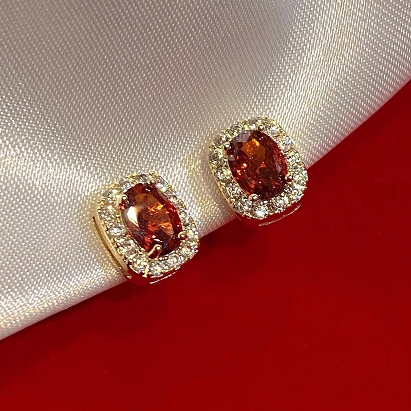 Brincos coreanos elegantes de temperamento antigo, misture e combine brincos ovais com microincrustações de zircónias brilhantes, vendas diretas da fábrica