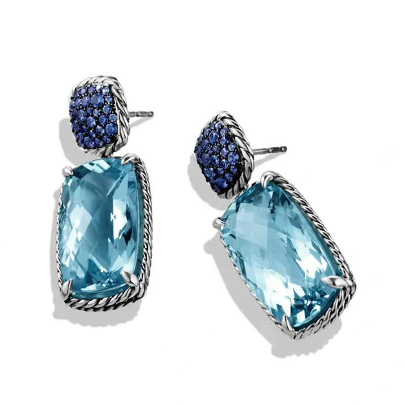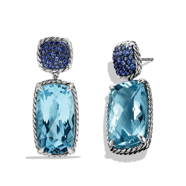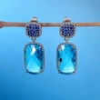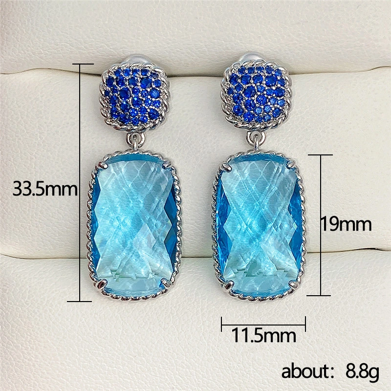 Brincos longos de água-marinha simulada, luxuosos brincos de zircónia com diamante quadrado grande e grande para mulheres