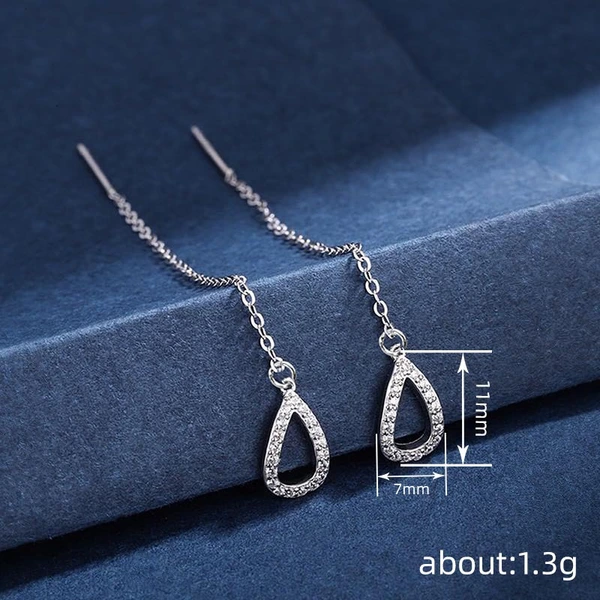 brincos longos de corrente em forma de lágrima com borla, design simples e moderno e personalidade com micro zircónias incrustadas