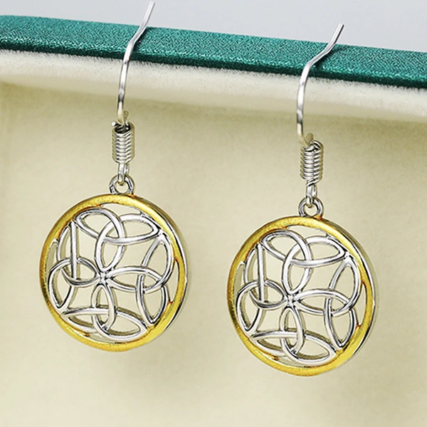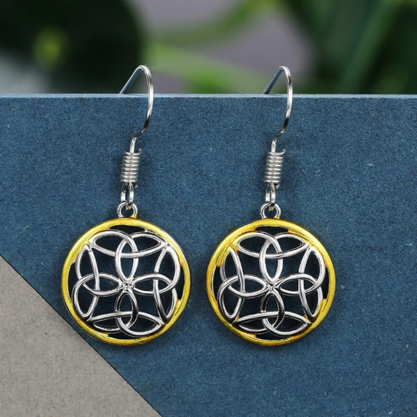 Brincos longos retro de joias europeias e americanas, best-sellers, personalidade retro, criativos, redondos, ocos, de duas cores, venda por grosso