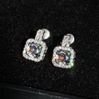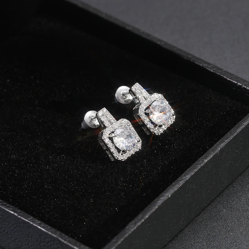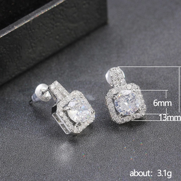 Brincos mais vendidos, brincos quadrados requintados para mulheres, cheios de diamantes e zircões incrustados, brincos banhados a platina, joias por atacado