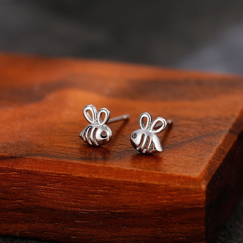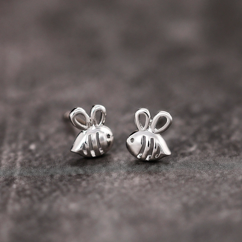 Brincos minimalistas de abelha fofos para meninas, brincos de animais ocos e lisos em estilo floresta, mini brincos de estudante