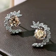 brincos japoneses e coreanos em forma de coração, brincos microincrustados de girassol e girassol bicolor, brincos elegantes de design oco