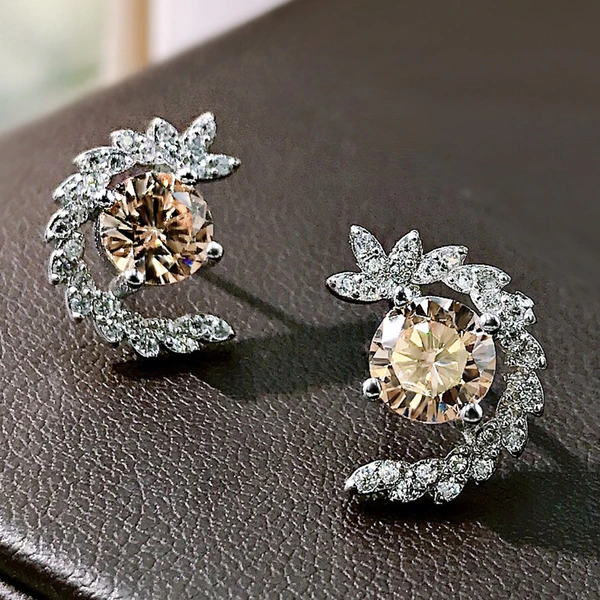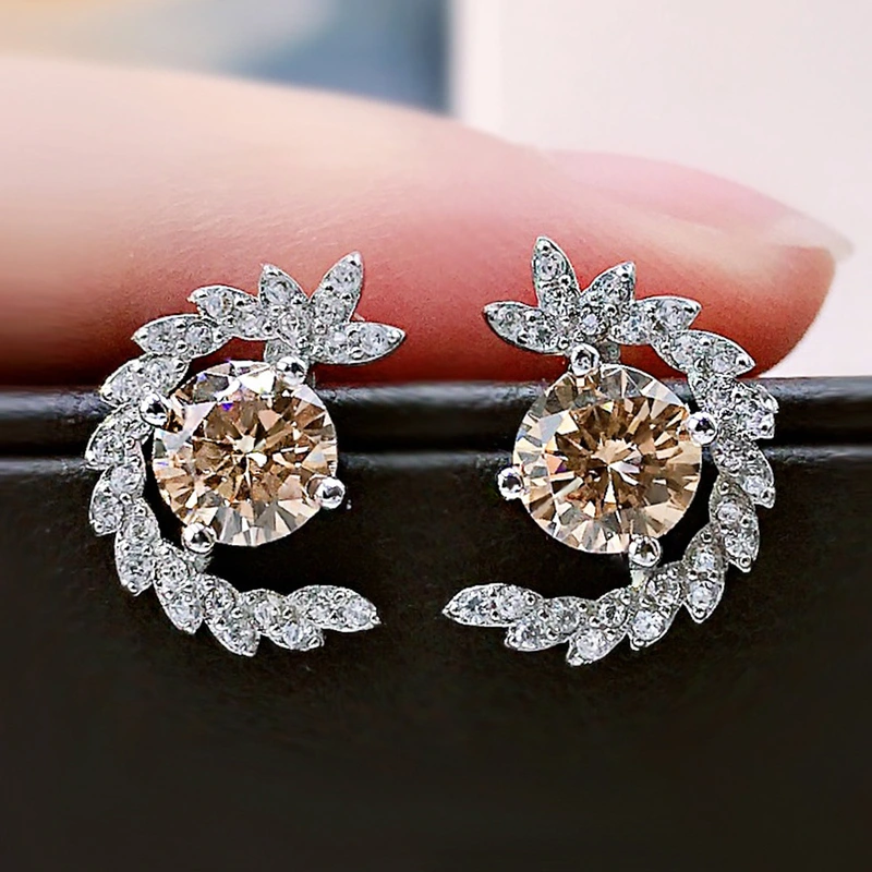 Brincos novos ao vivo, brincos de orelha de trigo com zircónia incrustada de cobre, brincos de celebridades da internet com o mesmo estilo de temperamento para mulheres